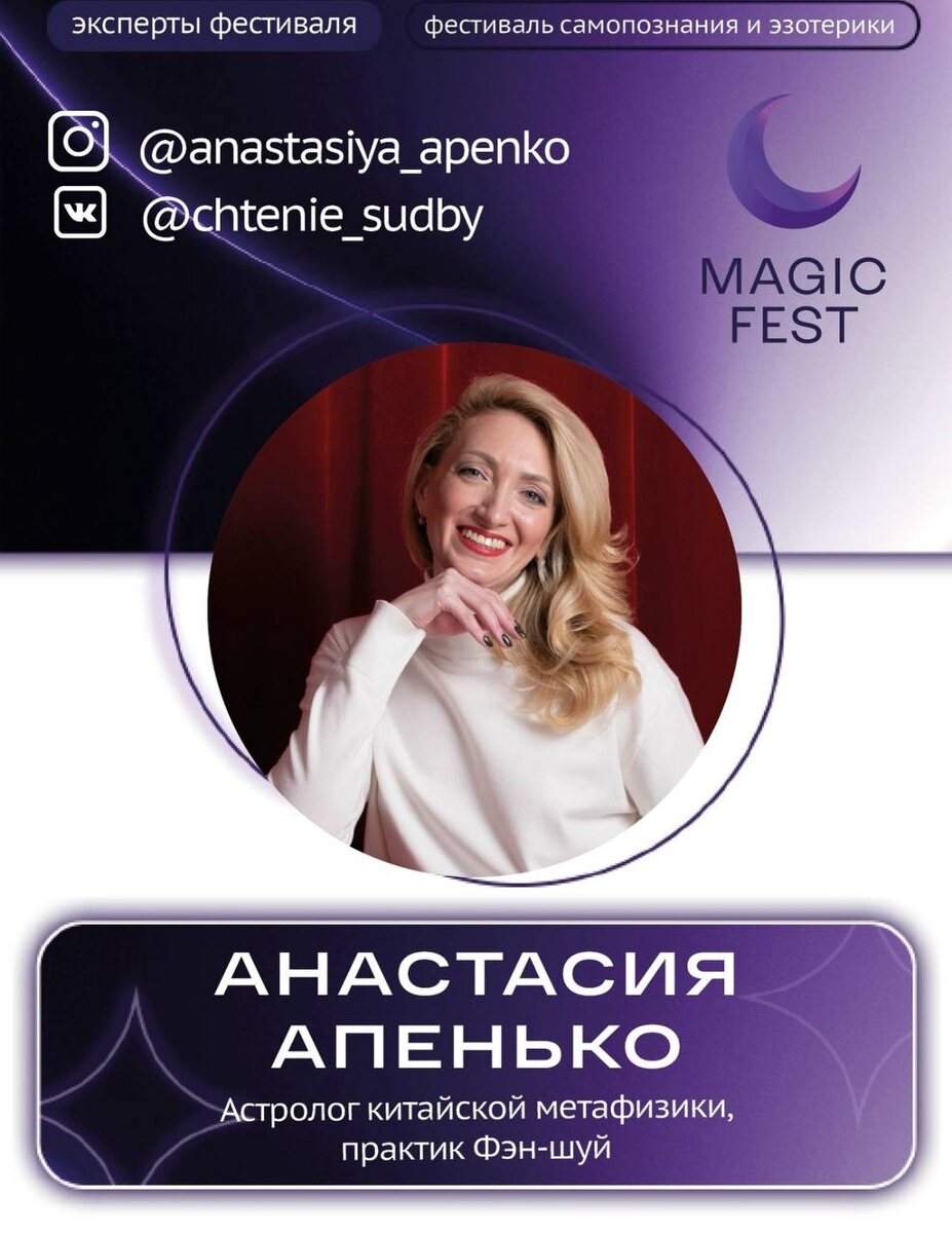На фестивале я поведу анализ вашей натальной карты, дам ответы на важные вопросы! И в подарок каждый участник получит от меня фэн-шуй активизацию ☯️.