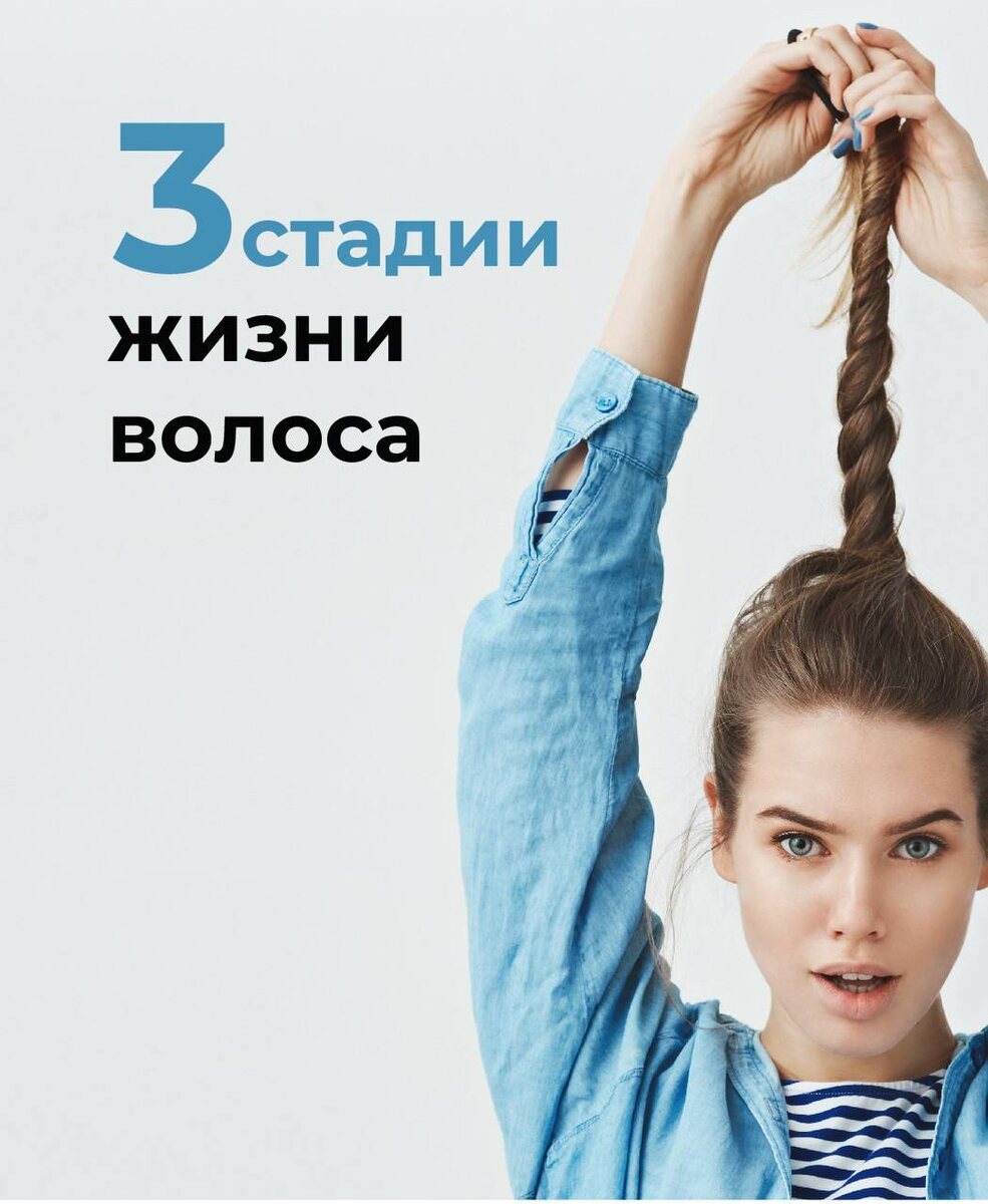 Стадии роста волоса. Хотите отрастить красивые и густые волосы? Для этого важно понимать, как именно происходит рост волоса. Волосы проходят 3 стадии: ✅ Анаген — активный рост, который длится 2–8 лет. В этот период формируется длина и густота волос. ✅ Катаген — замедление роста, продолжается 4–6 недель. Волос постепенно «готовится» к покою. ✅ Телоген — фаза покоя и прекращения роста, длится 2–3 месяца, после чего волос выпадает. 3 основных лайфхака для здоровых и длинных волос: 1. Поддерживайте активную фазу роста Анаген как можно дольше. Питайте корни и поддерживайте изнутри организм полноценным белковым питанием. Экономия организмом белка способствует преждевременному переходу волос в фазу покоя Телоген. 2. Не расчёсывать мокрые волосы. Волосяной стержень впитывает влагу, становится тяжёлым, легко растягивается. Чешуйки кутикулы раскрыты и очень ломкие, пока волос не высох и не закрылся. Распаренная кожа головы даже при незначительном натяжении способствуют потере волос..