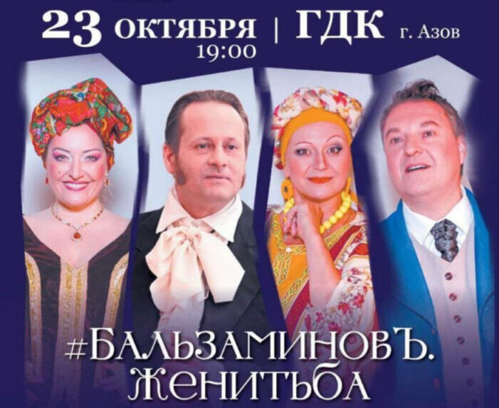 23 октября в 19:00 на сцене Городского Дворца Культуры Азова Московский Современный Художественный Театр представит свой знаменитый спектакль «БальзаминовЪ. Женитьба». Постановка создана по мотивам знаменитой трилогии Александра Островского о мечтательном и трогательном Мише Бальзаминове. Это история о поисках счастья, полная юмора, ярких характеров и неподражаемого русского колорита. Продолжительность: 1 час 40 минут, без антракта.