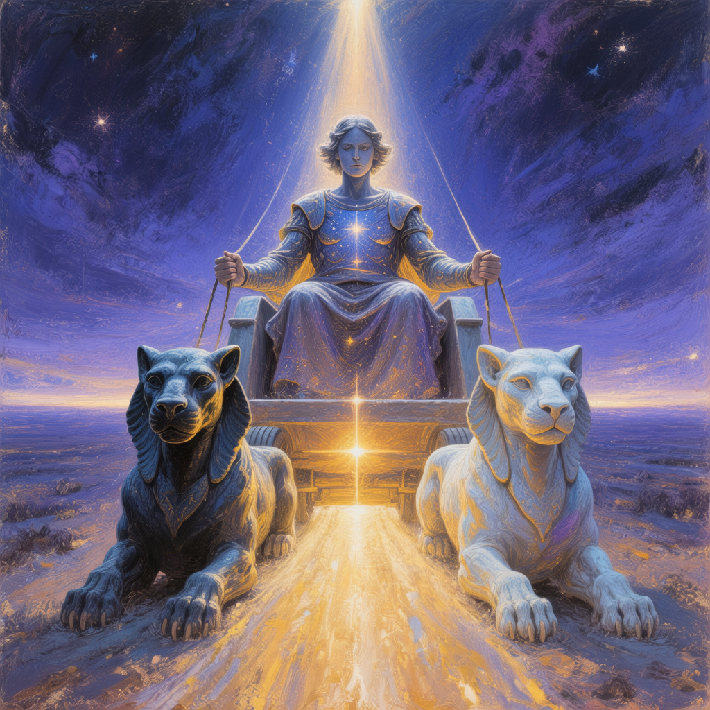 Я сажусь в центр - две силы по бокам, вожжи в ладонях. Спина как мачта, взгляд на горизонт, дыхание ровное. Я не подгоняю мир - я выбираю дорогу и темп. Мой дом живет вместе со мной - форму держат границы, сердце задаёт курс. Путь благословлён, когда мне достаточно моего «зачем». Сила Колесницы - Сила - в согласии намерения и тела, а не в спешке. - Движение - это ритм и форма, а не рывки. - Контейнер - бережёт путь: время, маршрут, правила. - Внимание - луч: куда смотрю, туда течёт сила. - Ответственность - свобода выборов на развилках. Ясность Колесницы - Сначала «зачем» - потом «куда» - потом «как». - Темп на 30 % медленнее первого импульса - чтобы доехать, а не сгореть. - Информировать вовлечённых - снимает сопротивление дороги. - «Нет» лишним поворотам - «да» главному маршруту. - Внутренняя тишина держит внешнюю скорость. Поддержка - Тело: стопы к земле, макушка к небу, осанка у стены 2 минуты. - Дыхание 4/6 - выдох длиннее мысли. Глаза - на го