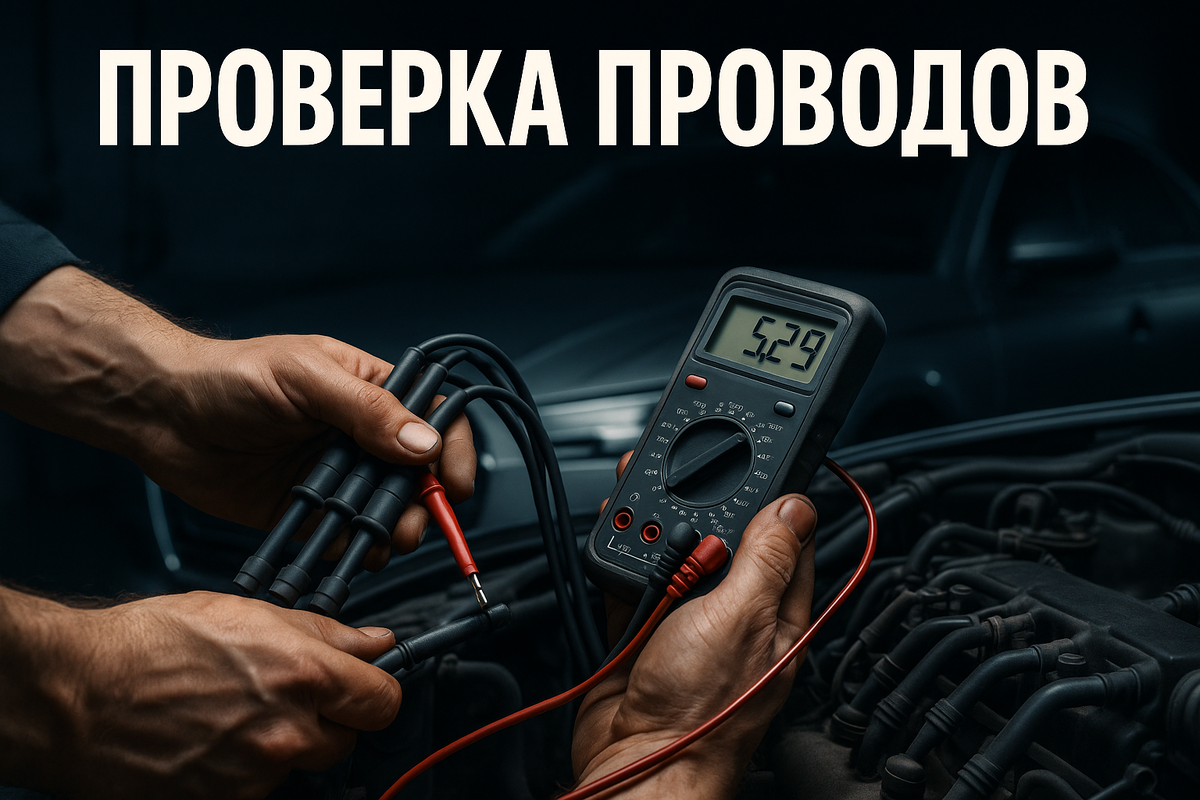 Проверка высоковольтных проводов мультиметром — простая процедура доступная каждому автовладельцу. Нужен только мультиметр за 500 рублей и 20 минут времени. Измеряете сопротивление каждого провода — норма 3-10 кОм, разброс не больше 2-3 кОм между проводами. Проверяете изоляцию на пробой массы — должна быть бесконечность. Если провод сильно отличается по сопротивлению, показывает обрыв или пробит на массу — меняйте весь комплект.