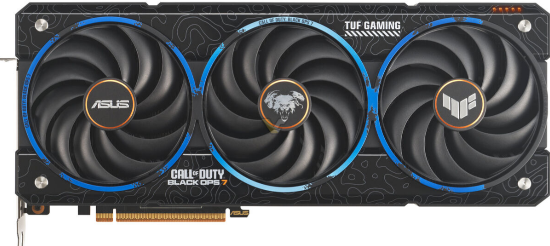 Видеокарта TUF Gaming Radeon RX 9070 XT Call of Duty: Black Ops 7 Edition была создана в сотрудничестве с издательством Activision. Она выполнена в стиле игры Black Ops с логотипом Chimera и оранжевыми включениями. Каждая видеокарта будет комплектоваться цифровой копией игры для ПК и продаваться в избранных розничных магазинах по всему миру. Основанная на архитектуре AMD RDNA 4, видеокарта RX 9070 XT оснащена 16 ГБ памяти GDDR6 и поддерживает технологию масштабирования FSR 4 от AMD на базе машинного обучения. Для вывода изображения в высоком разрешении и с высокой частотой используются разъемы DisplayPort 2.1. Графическая карта первый раз была представлена на пресс-конференции Call of Duty NEXT в Лас-Вегасе в конце прошлого месяца. Компания ASUS оснастила данную модель системой охлаждения Axial-tech с тремя 11-лопастными вентиляторами, широкими алюминиевыми вентиляционными отверстиями на задней пластине и технологией OdB Fan-Stop для бесшумной работы при невысокой загрузке. Также ускор