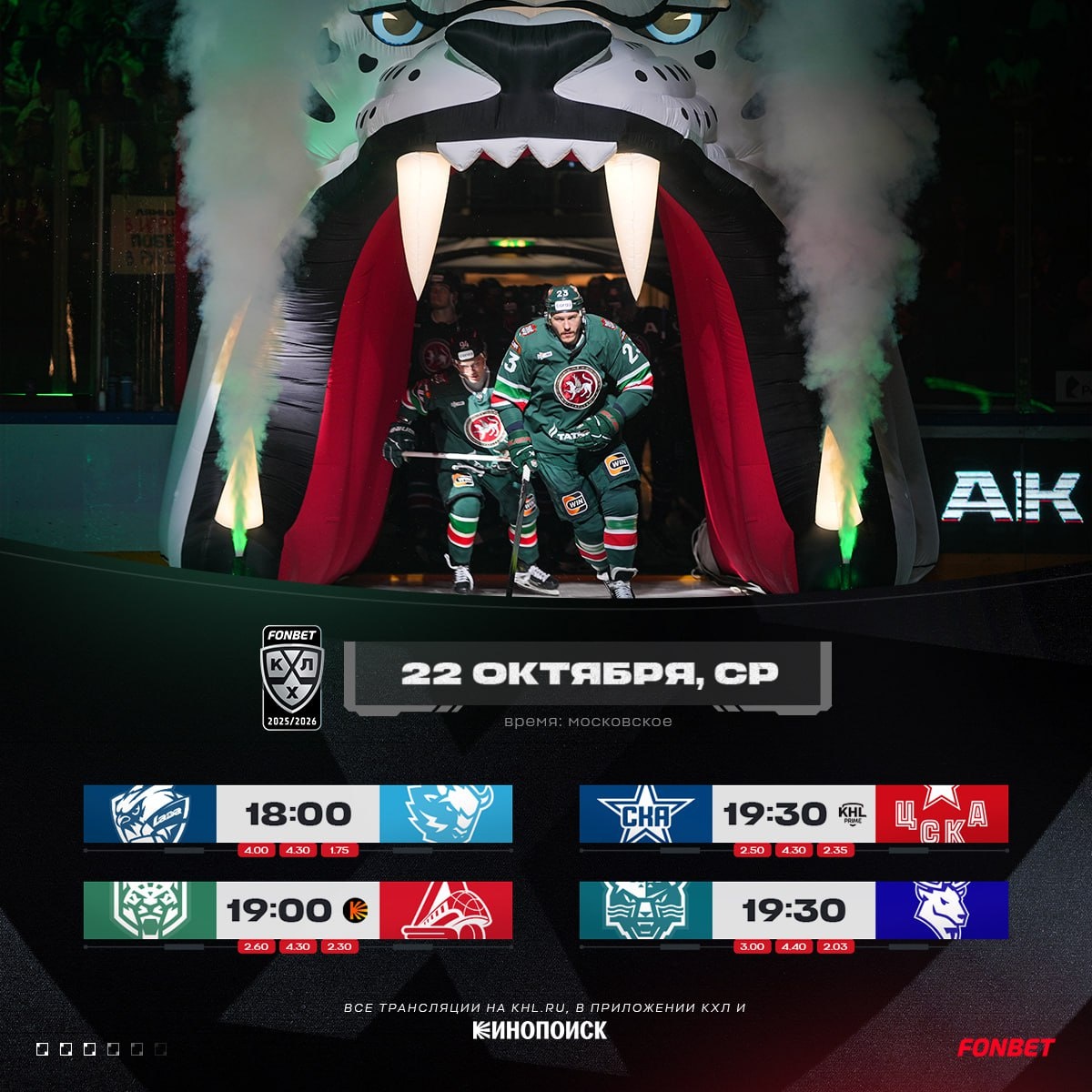 «Ак Барс» в игре с «Локомотивом» попытается одержать восьмую победу подряд, Санкт-Петербург примет первое армейское дерби сезона. 📊 Превью 📱 Смотрите Фонбет КХЛ на Кинопоиске с подпиской Яндекс Плюс
