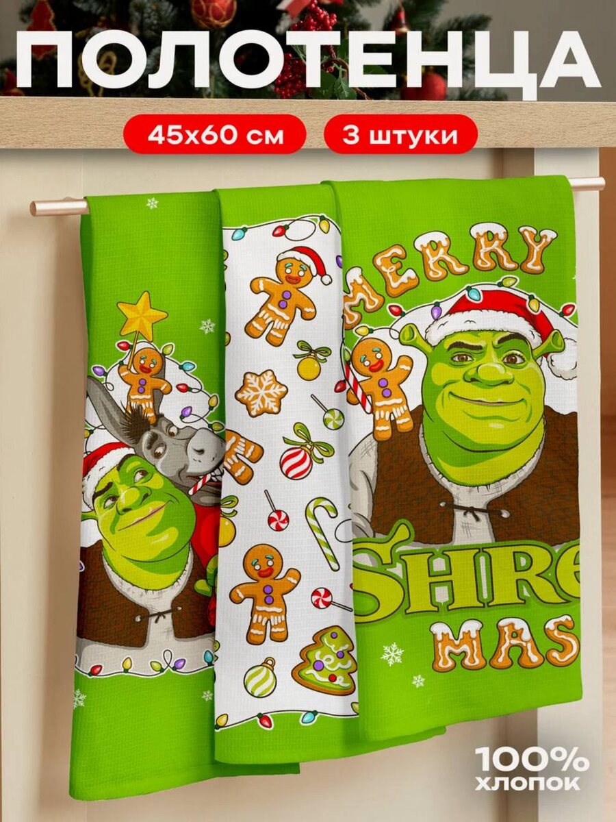 На Маркет завезли рождественские полотенца со Шреком, Ослом и Пряней. Стоит комплект из трех штук 607 рублей.