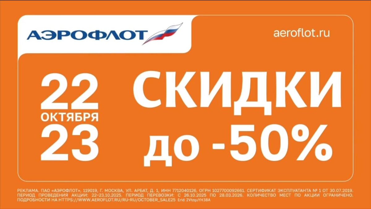⚡️Скидки до 50% на авиабилеты от «Аэрофлота»!