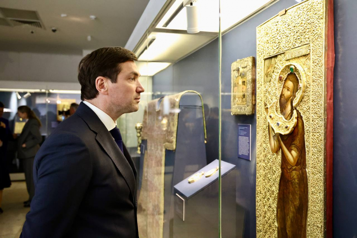 Среди уникальных реликвий — белый клобук патриарха Филарета, отца первого царя из рода Романовых Михаила Фёдоровича, украшенный золотом, жемчугом и сапфирами. Особое место занимает золотой ковш царя Бориса Годунова с гербом и надписью «Божией милостью великий гдрь црь и великий князь Борис Федорович всея Руси самодержец». Экспонат отражает переломную эпоху Смутного времени и теперь впервые показан за пределами Москвы.