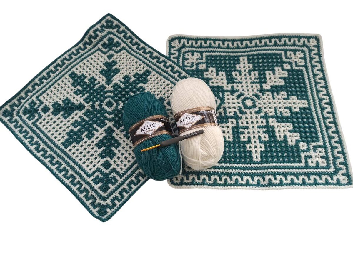В чате «Снежная поляна» вы найдете несколько схем, включая базовую небольшую — эта снежинка отлично ляжет в подарочное полотенце или подушку❄️