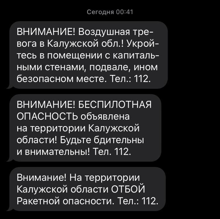 ❗️ Воздушная тревога, беспилотная и ракетная опасности объявлялись над Калужской областью этой ночью