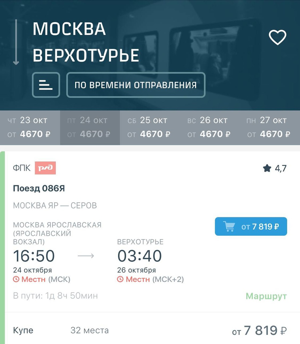 Через день из Москвы с Ярославского вокзала отправляется поезд в направлении Серова. На нем за 1 день и 9 часов можно доехать до Верхотурья. Единственное, поезд прибывает в 03:40, поэтому, нужно заранее позаботиться о жилье, сделать это будет очень сложно.