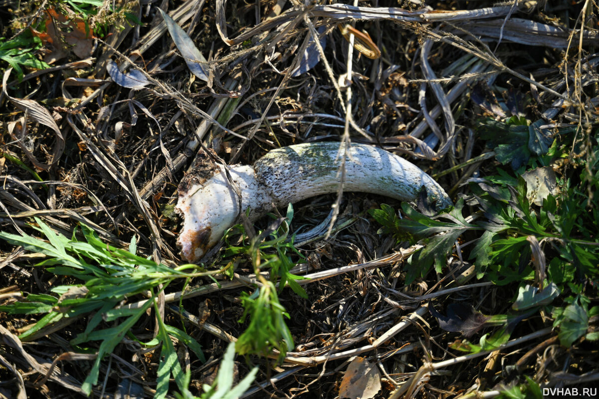 В мае этого года экологи, благодаря сообщениям местных жителей, обнаружили в районе имени Лазо овраг, доверху забитый мешками с останками скота. Незаконное размещение биологических отходов стало основанием для прокурорской проверки. — Мы привлекли сюда природоохранную прокуратуру, ветеринарию. По результатам нашего выезда была проведена прокурорская проверка, были приняты меры прокурорского реагирования. Но, как мы наблюдаем, на сегодняшний день уполномоченными органами, то есть районной администрацией, мер к ликвидации этой свалки предпринято не было, — рассказал Олег Губарец, руководитель ОЭД «Защита природы». За прошедшие полгода останки скота успели разложиться и уйти глубоко в землю. О масштабах загрязнения свидетельствуют разбросанные рога, копыта и черепа животных. Экологи бьют тревогу: такое захоронение создает благоприятные условия для вспышки различных инфекций, которые могут представлять угрозу для здоровья людей и животных. — Что мы сегодня наблюдаем? Загрязнение осталось н