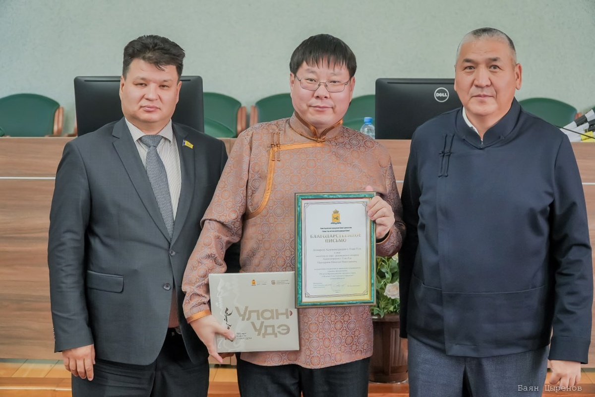 🤝Организация конференции АСДГ – труд совместный 🎊Горсовет Улан-Удэ наградил участников и организаторов масштабного мероприятия, которое столица Бурятии принимала в сентябре этого года – конференции Ассоциации сибирских и дальневосточных городов (АСДГ). ✨Церемония награждения состоялась на совместном заседании комитетов горсовета Улан-Удэ. Благодарственные письма горсовета и памятные подарки из рук председателя горсовета Чимита Бальжинимаева и заместителя председателя Анатолия Белоусова получили руководители и сотрудники структурных подразделений Администрации Улан-Удэ. 💫Награды также вручили представителям бизнес-сферы. Предприниматели смогли удивить своей продукцией жителей и гостей Улан-Удэ. ☝️Напомним, конференция АСДГ проходила в рамках торжественных мероприятий, посвященных 150-летию Верхнеудинской думы и 30-летию городского Совета. 🔎Подробнее о том, какие вопросы депутаты горсовета Улан-Удэ и представители Ассоциации обсуждали на конференции, можно найти по ключевому сло