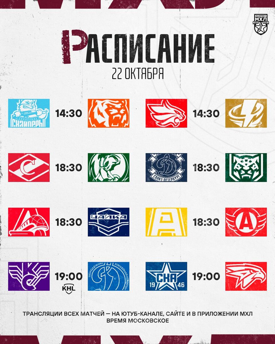 «Сибирские Снайперы» встретятся с «Амурскими Тиграми», «Крылья Советов» принимают московское «Динамо», в Санкт-Петербург приехали Восточные команды 🏒@mhlrus