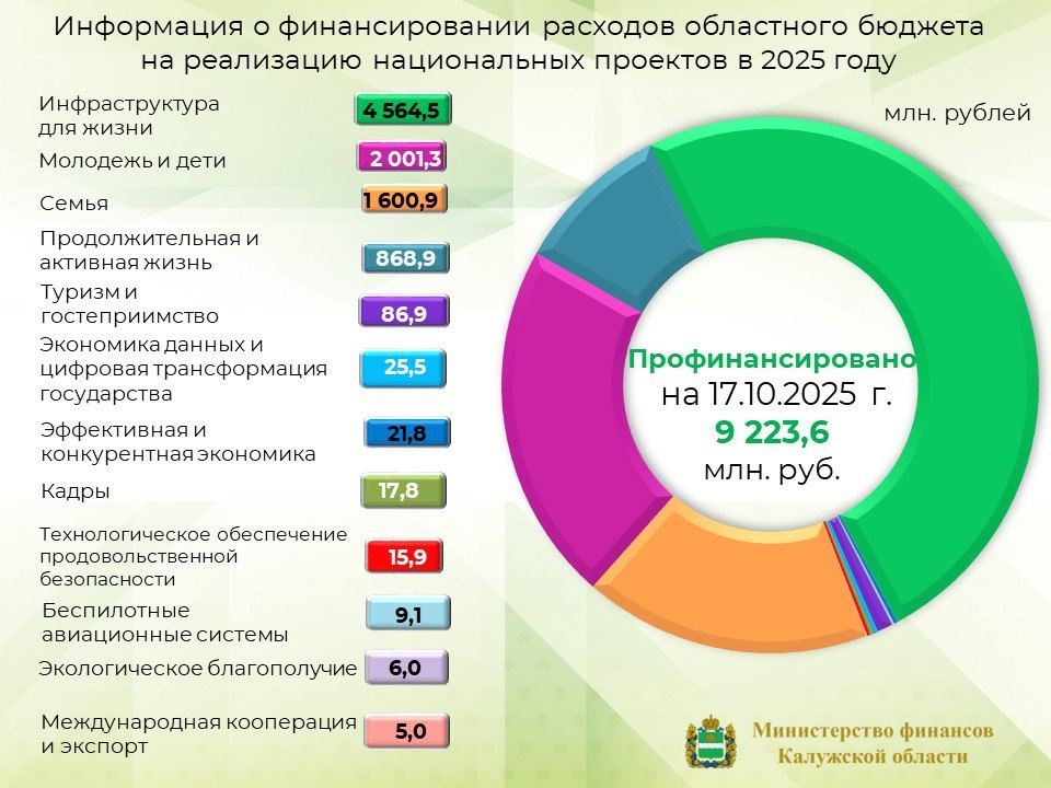 Финансирование национальных проектов по состоянию на 17.10.2025 года составило 9 223,6 млн. рублей.