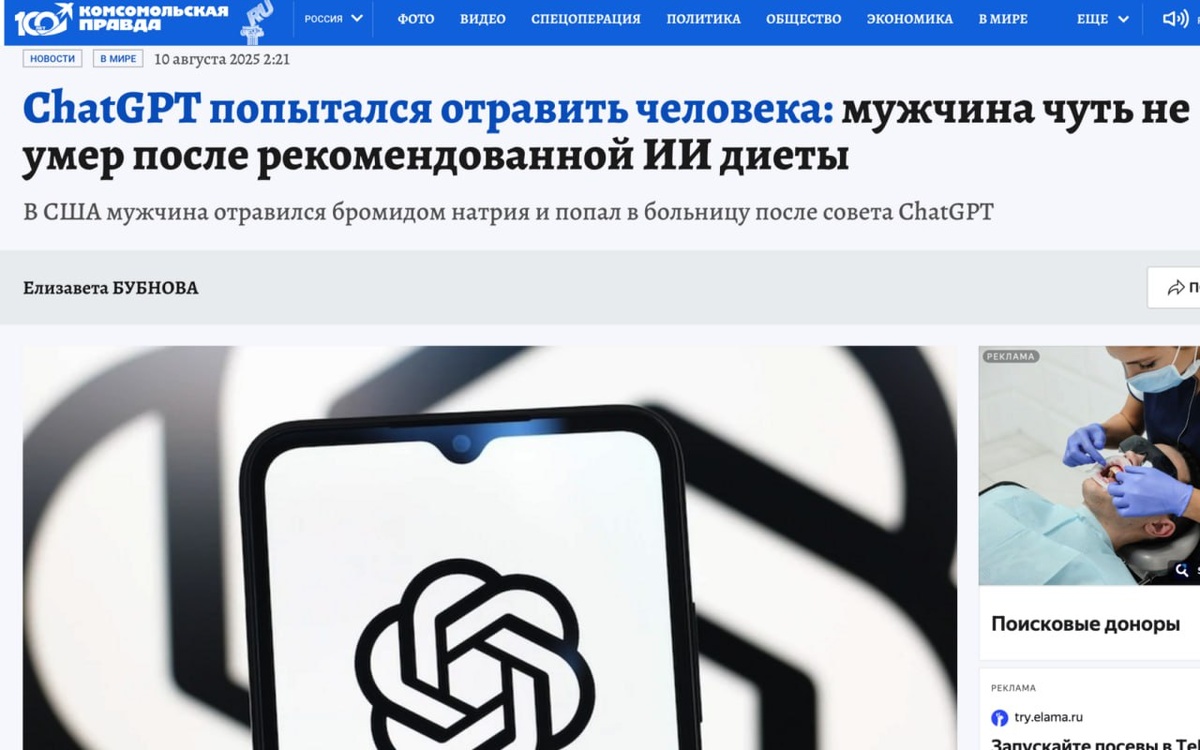 Почему нельзя готовить по рецептам ChatGPT: случай с госпитализацией