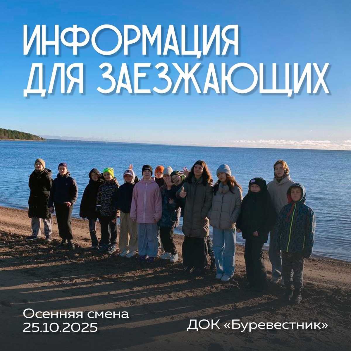 25.10.2025 организованные группы детей, дети в сопровождении родителей (законных представителей), принимаются на базе ДОК «Буревестник» по адресу: 197729, Санкт-Петербург, г. Зеленогорск, пос. Смолячково, Приморское шоссе, д. 696.