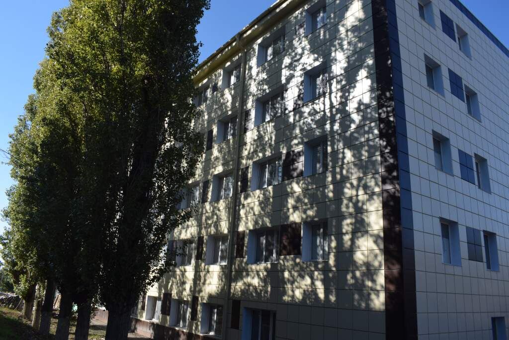Здание общежития СИТ уже сегодня выглядит современно и добротно, хотя срок сдачи объекта в конце ноября. Глаз радует новый фасад, сияющие чистотой окна. На всех пяти этажах кипит работа. Как проходит завершающий этап капремонта, рассказала директор СИТ Марина Сенченко, которая провела для нас экскурсию по этажам общежития.