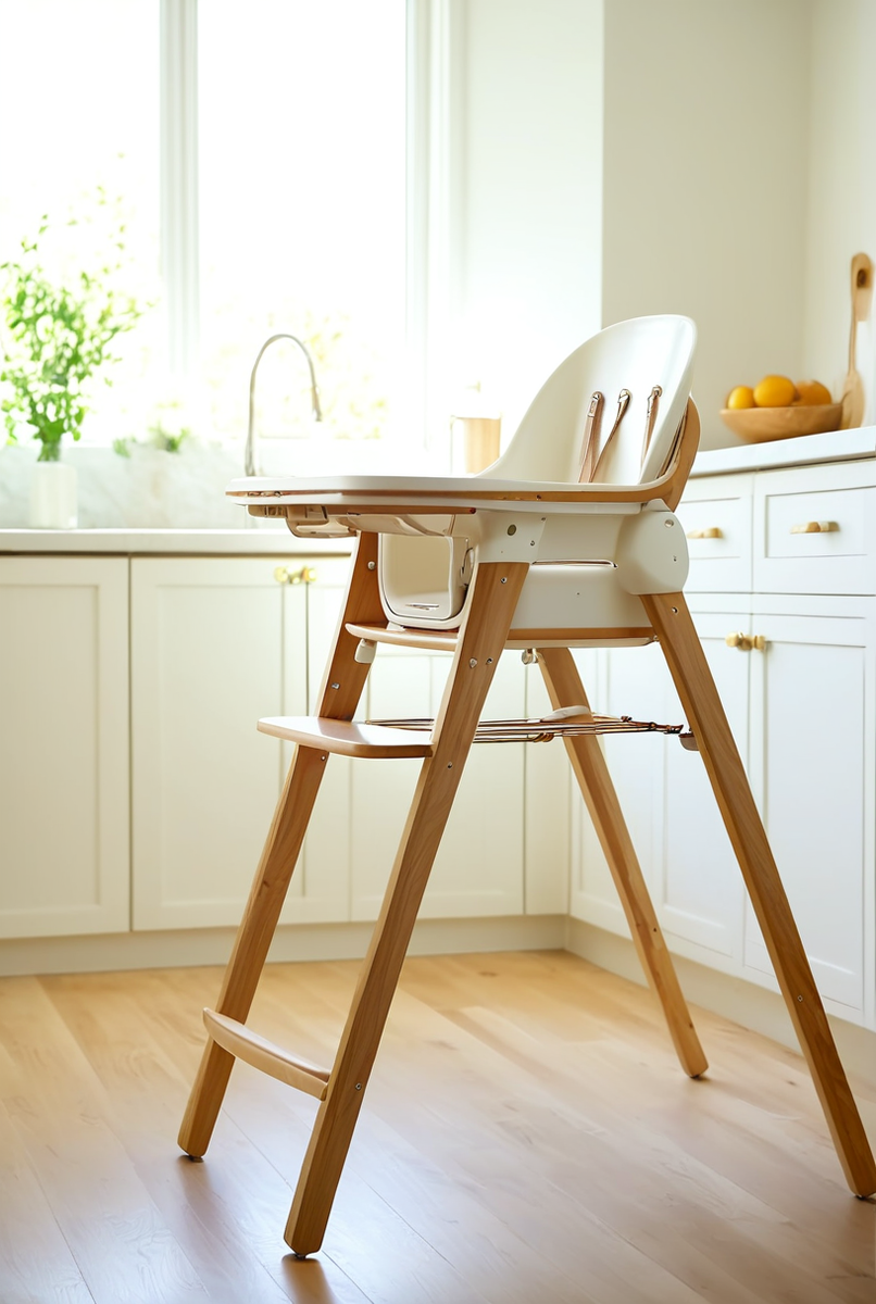 Классические стационарные модели отличаются жесткой конструкцией из дерева, не регулируются, но очень устойчивы․ Для компактного хранения подойдут стульчики с небольшим диаметром ножек․ Навесные стульчики, крепятся к столешнице, экономя место․