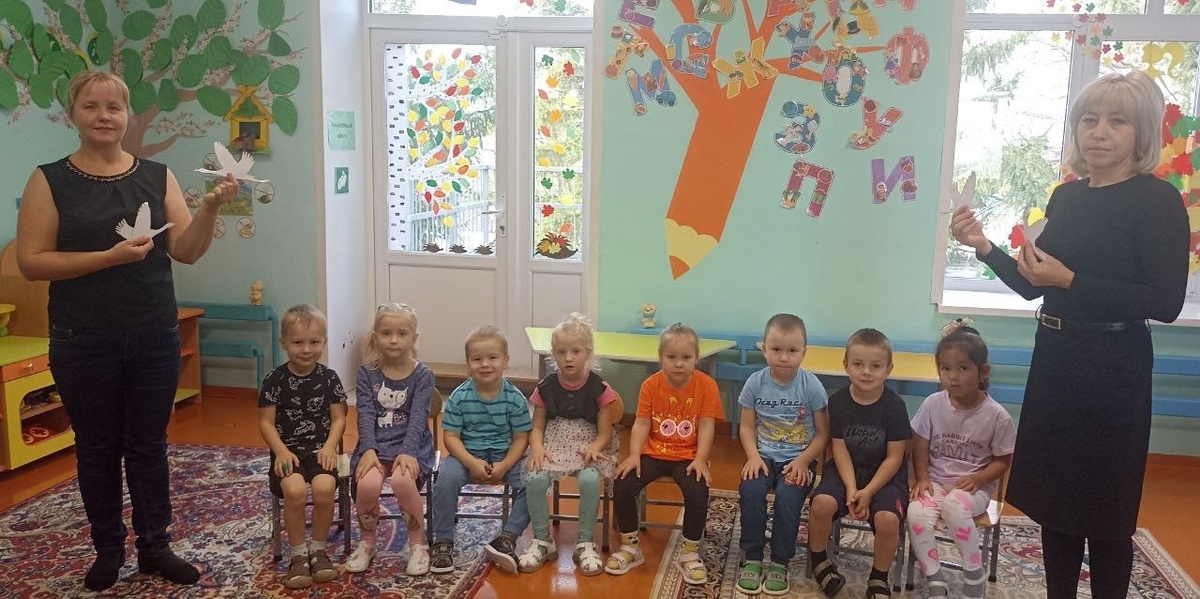 В детском саду «Рябинушка» села Октябрьский прошло тематическое занятие, на котором воспитанники под руководством воспитателя Светланы Хасановой вырезали белых журавликов, а в ходе мероприятия Татьяна Костейникова и Алена Иргалиева продекламировали детям стихотворение «Журавли».