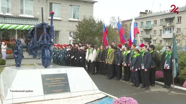 Пахал землю и сеял надежду. В Тосненском районе на территории Племхоза имени Тельмана открыли необычный памятник. Мемориал посвящен землепашцам, которые в годы Великой Отечественной войны и после нее не щадя сил кормили фронт и тыл. Центром композиции стал настоящий трактор «Универсал» 1945 года выпуска. На торжественной церемонии открытия побывал корреспондент ЛенТВ24 Максим Бажанов. Под аплодисменты раскрывается главный герой торжественной церемонии — трактор «Универсал». Его установили в честь землепашцев послевоенных лет. Под техникой фраза «Пахал землю и сеял надежду». Фраза, которая как нельзя лучше описывают смысл нового мемориала. Синий трактор на пьедестале не макет. Это настоящий железный труженик 1945 года выпуска с Владимирского тракторного завода. Один из первых советских тракторов, который заменил лошадей, прадедушка всей современной отечественной сельхозтехники. Раритетный трактор обнаружили сотрудники музея «Битва за Ленинград». И оказалось, что он уникален не только во