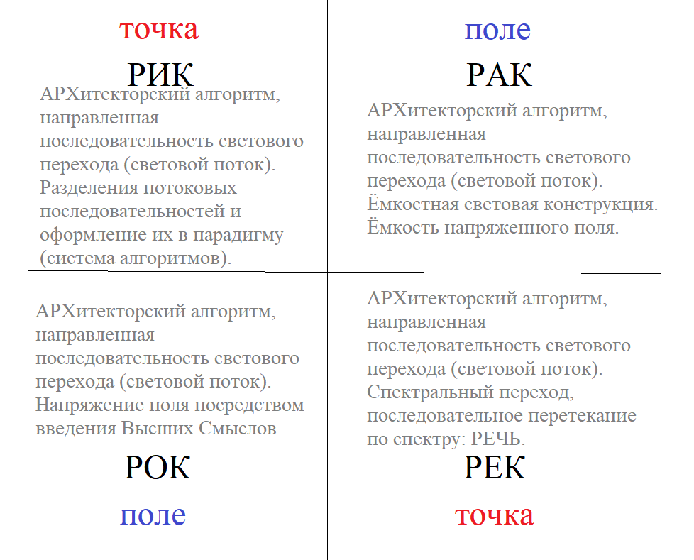 Эту схему не стоит путать с использованием гласных звуков и со схемой гласных звуков. Гласные используются так, как показано на картинке с чередованием РИК/РОК/РАК/РЕК.