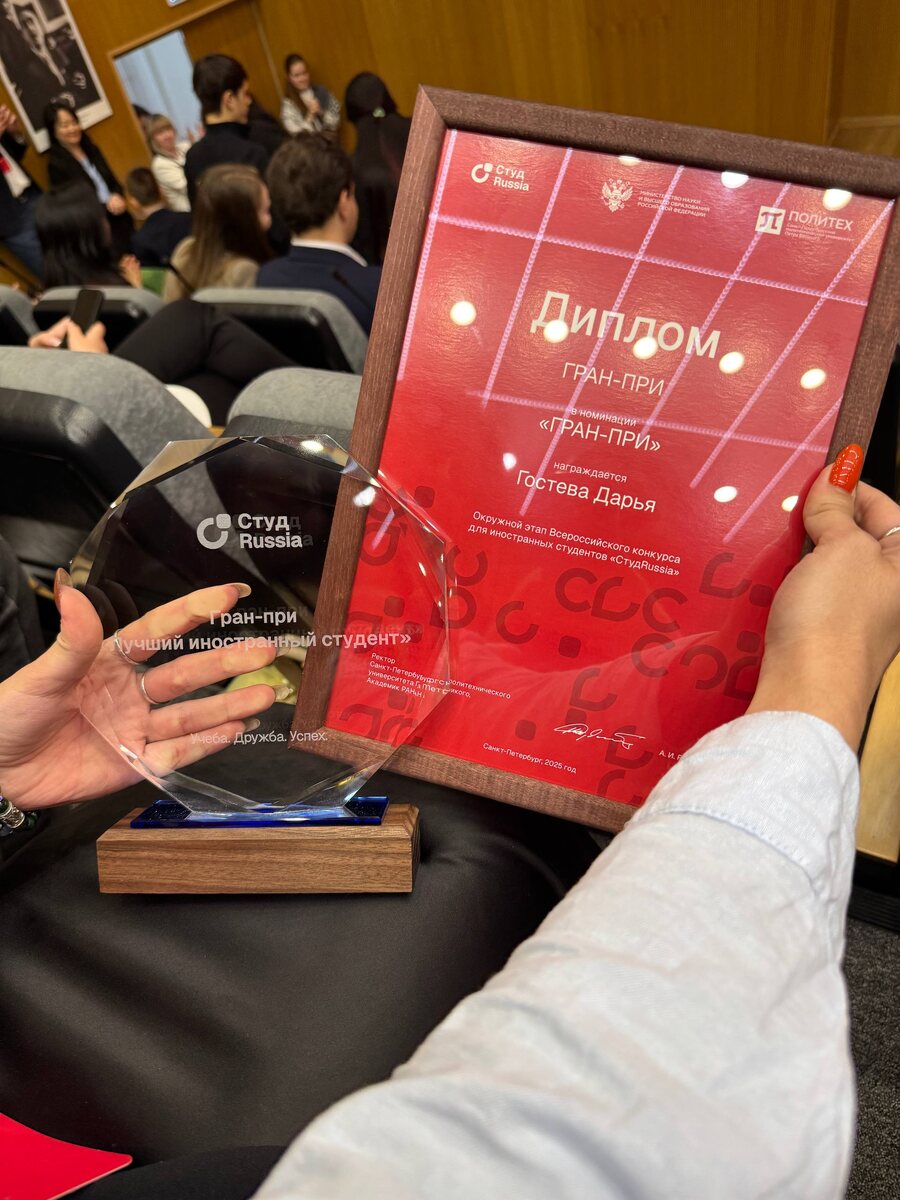 Студентка Института прикладного искусства СПбГУПТД из Казахстана Дарья Гостева завоевала гран-при окружного этапа Всероссийского конкурса для иностранных студентов «СтудRussia», учрежденного Минобрнауки России. Впереди у Дарьи финал в Москве. В рамках конкурса Дарья рассказала историю своего своего пути в России - поведала членам жюри о том, как из обычного волонтера можно вырасти в лидера международных проектов. Сегодня девушка руководит работой межнационального клуба студентов СПбГУПТД. Когда девушка приехала из Казахстана, то и представить не могла, что сможет руководить межнациональным клубом. Дарья вспоминает, что приехав на учебу в Петербург, было страшно, многое становилось не понятным, присутствовала даже боязнь быть непринятой. «С каждым годом в российские вузы приезжает учиться все больше ребят из других стран, - комментирует Дарья. - И перед нами встает очень человечный вопрос: как освоиться на новом месте? Каждому из нас знакомо это чувство, когда ты оказываешься в незнако