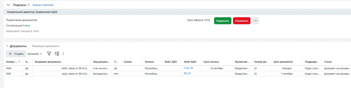 Когда в бумажном виде и через сервисы ЭДО поступает большой поток договоров, счетов и актов, начинаются сложности: документы застревают на согласованиях, а бухгалтерия тратит время на напоминания. Рассказываем, как можно решить это через автоматизацию всего цикла обработки входящих документов и создание единого реестра. Часть контрагентов работала через электронный документооборот, другие продолжали обмениваться бумажными экземплярами. Общего реестра не было, поэтому невозможно было быстро подтвердить факт поступления документа и его статус. Сотрудники проверяли информацию в разных источниках, а это увеличивало время обработки и риск потери документов. Подготовка и согласование договоров требовали личного участия сотрудников и отнимали много времени. Специалисты сначала формировали документ в текстовом редакторе, затем сами писали одобрителям и отслеживали весь процесс. Теперь все документы учитываются в одном месте, независимо от формата. Электронные загружаются в BPM-систему автомати