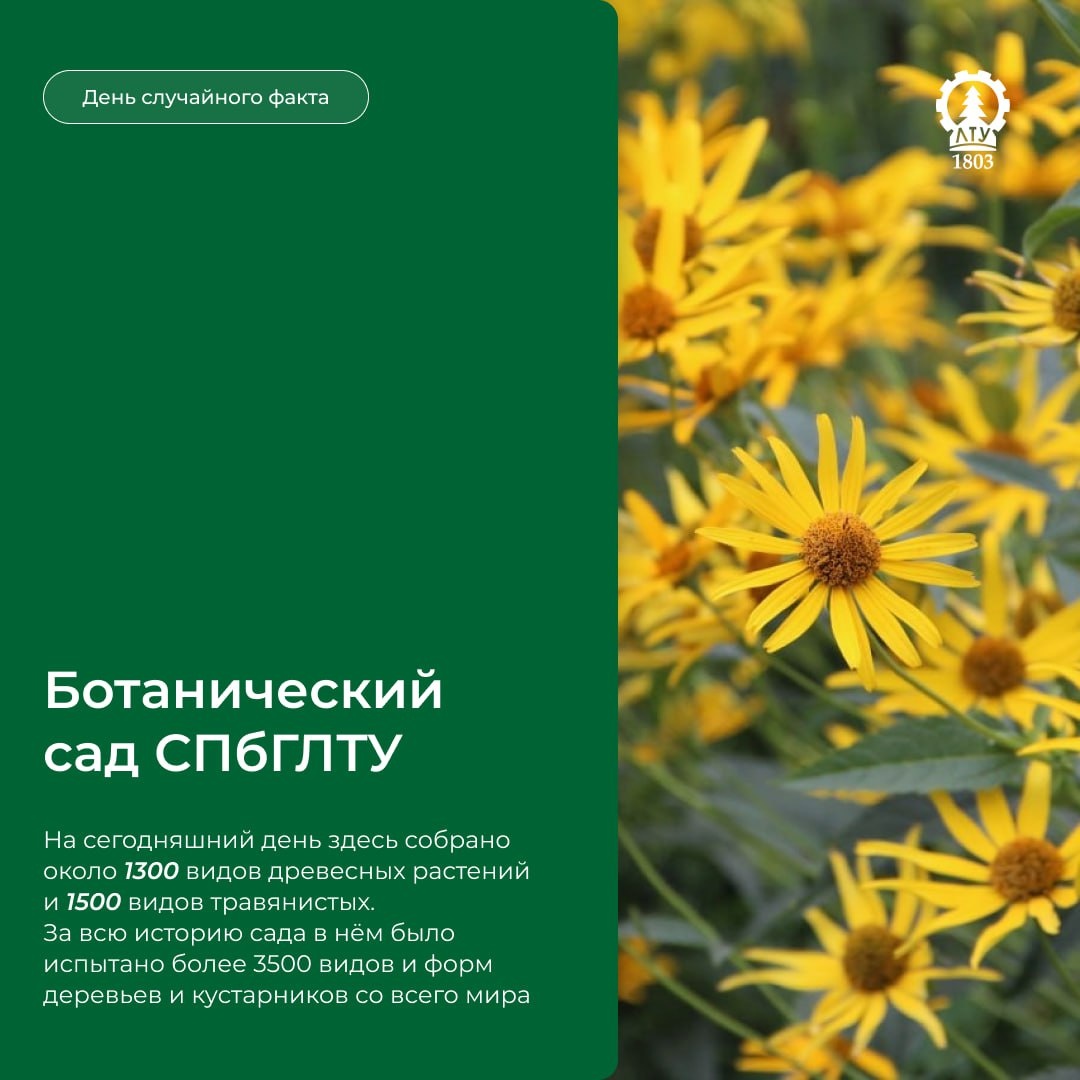 Богатейшая коллекция растений Ботанического сада СПбГЛТУ! А вы знали, что Ботанический сад нашего университета обладает одной из богатейших коллекций растений в регионе с непростым, прохладным климатом? 🌸 Ботанический сад СПбГЛТУ — это настоящая живая энциклопедия флоры, где можно встретить растения из разных уголков планеты 💛🌏
