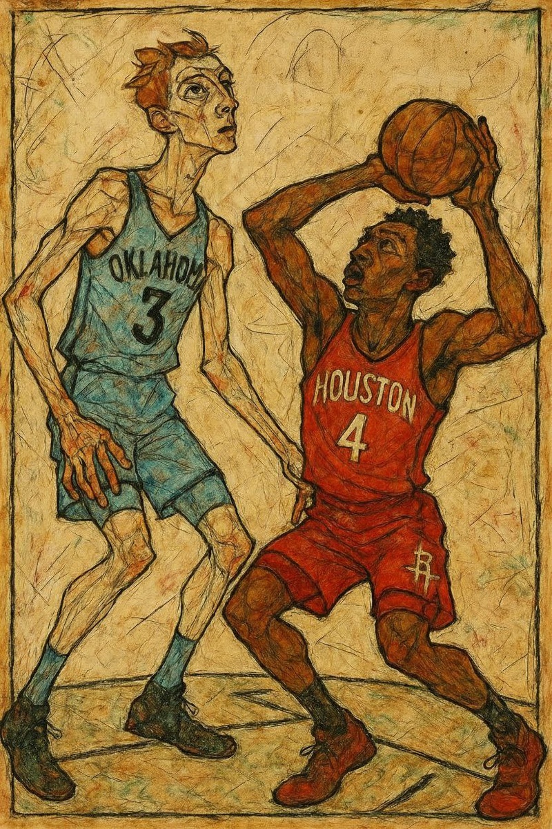 Чемпион прошлого сезона Оклахома начала новый с овертаймов. Все благодаря тому, что соперник был достойный - Хьюстон. За две секунды до конца основного времени успели Тандер сравняться. В первом овертайме чуть пораньше Оклахома вышла на равенство. А во втором всё-таки забрала победу с преимуществом в одно очко. В стиле Эгон Шиле