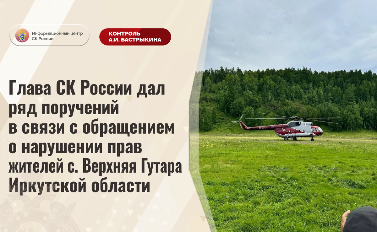 Глава СК России дал ряд поручений в связи с обращением о нарушении прав жителей с. Верхняя Гутара Иркутской области В комментариях в социальной сети в СК России поступило обращение по вопросу нарушения прав жителей села Верхняя Гутара Иркутской области, среди которых представители малочисленного народа историко-культурного региона Тофалария. С февраля текущего года после увольнения единственного работника фельдшерско-акушерского пункта граждане, проживающие в труднодоступной местности, лишены возможности своевременно получать необходимую медицинскую помощь. Мер к направлению в село нового медработника не принимается. Кроме того, в июле сокращено грузовое вертолетное сообщение, пассажирские авиаперевозки осуществляются лишь при благоприятных погодных условиях. Более двух месяцев в населенный пункт не доставляются продукты питания и лекарственные препараты. Многочисленные обращения граждан в различные инстанции результатов не принесли Ранее А.И. Бастрыкин ставил указанную ситуацию на кон