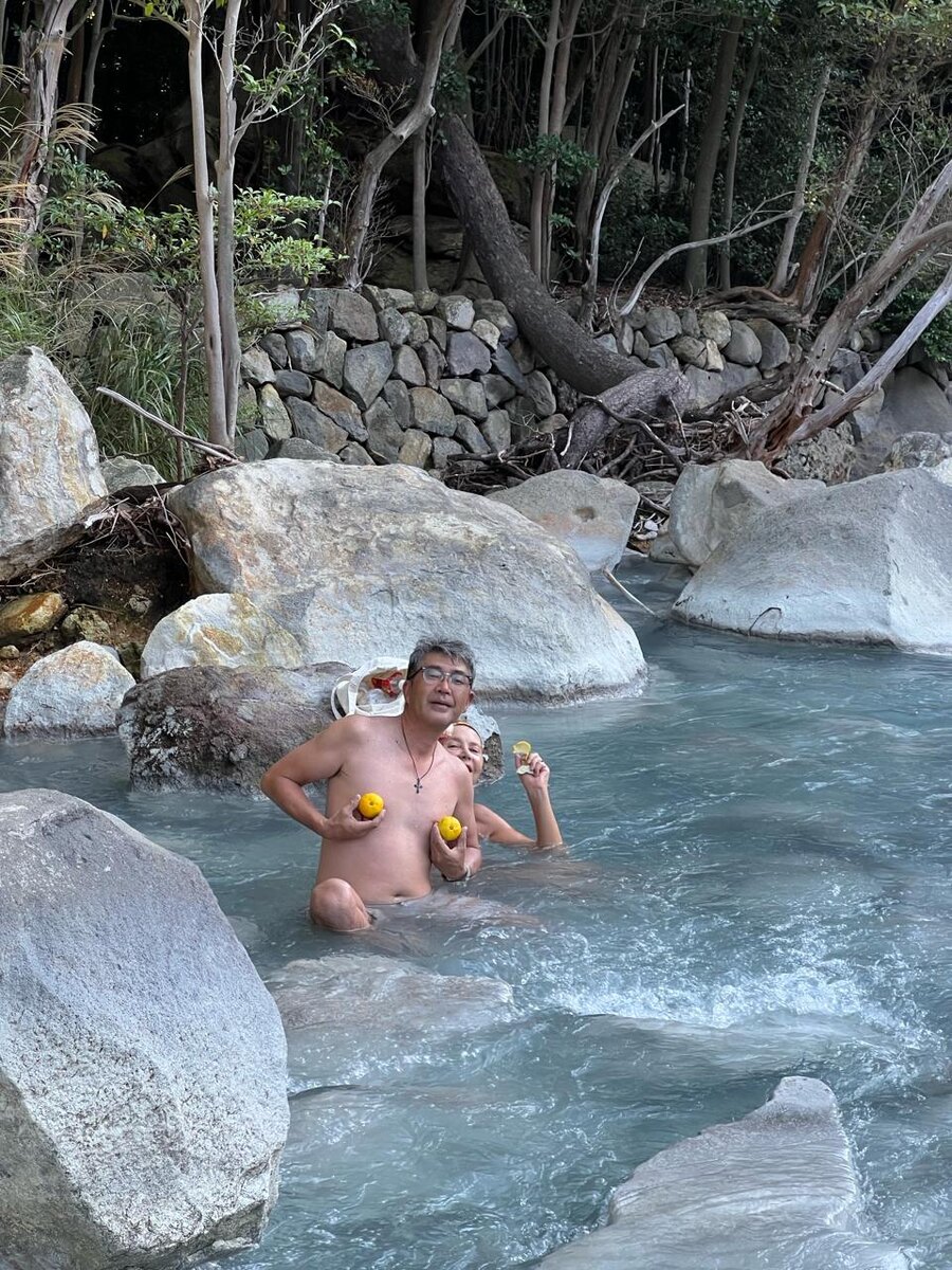 В лесном диком онсене горячие воды гейзеров смешиваются с ледяной водой бурной горной реки, образуя тёплые природные «ванны-джакузи». Наши гости из России были в восторге от дикого онсена! Природа в этих местах потрясающая! Кажется, что попал на другую планету или стал героем приключенческого фильма. Не передать словами, как приятно лежать в бурлящей тёплой минералке! Известно, что раньше самураи залечивали в диких целебных онсенах раны и переломы. Вода тут чистая и прозрачная, словно хрусталь. Интересно наблюдать как в ней, прямо на глазах, меняет цвет серебро - сперва оно становится золотым, потом ярко-синим, затем: фиолетовым, зеленым, коричневым и, наконец, черным как смоль! В этом посте есть видео, которое не загрузилось в Дзен. Откройте оригинал поста в телеграме, чтобы его посмотреть. Уважаемые читатели! Пожалуйста, подписывайтесь на мой Телеграм канал! Там будет больше публикаций и видео! Кто хочет материально поддержать мой блог, нажмите тут. Уважаемые читатели! Пожалуйста, ст