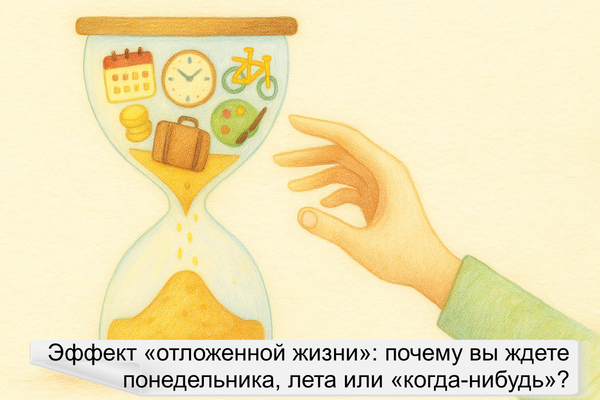 Эффект отложенной жизни заставляет нас бесконечно ждать условного завтра, похищая у нас единственное, что у нас есть наверняка: сегодняшний день.