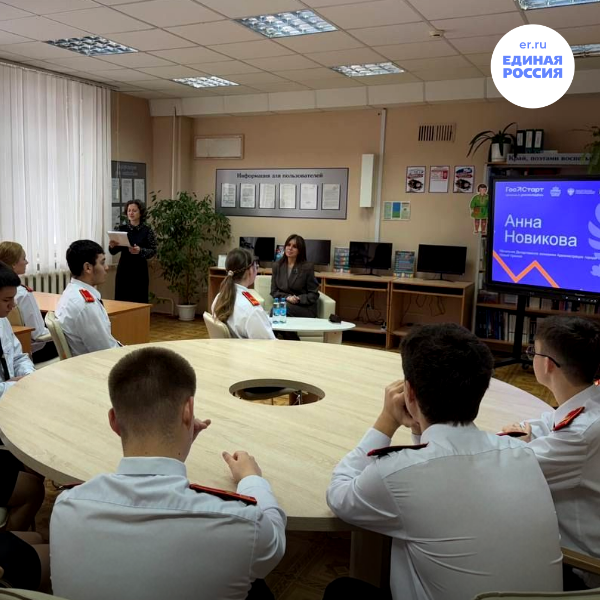 Председатель совета сторонников «Единой России» в Новом Уренгое, начальник департамента экономики в Администрации города Анна Новикова представила ребятам всероссийскую программу «ГосСтарт» в рамках ее профориентационного направления – «ГосСтарт.Диалог».