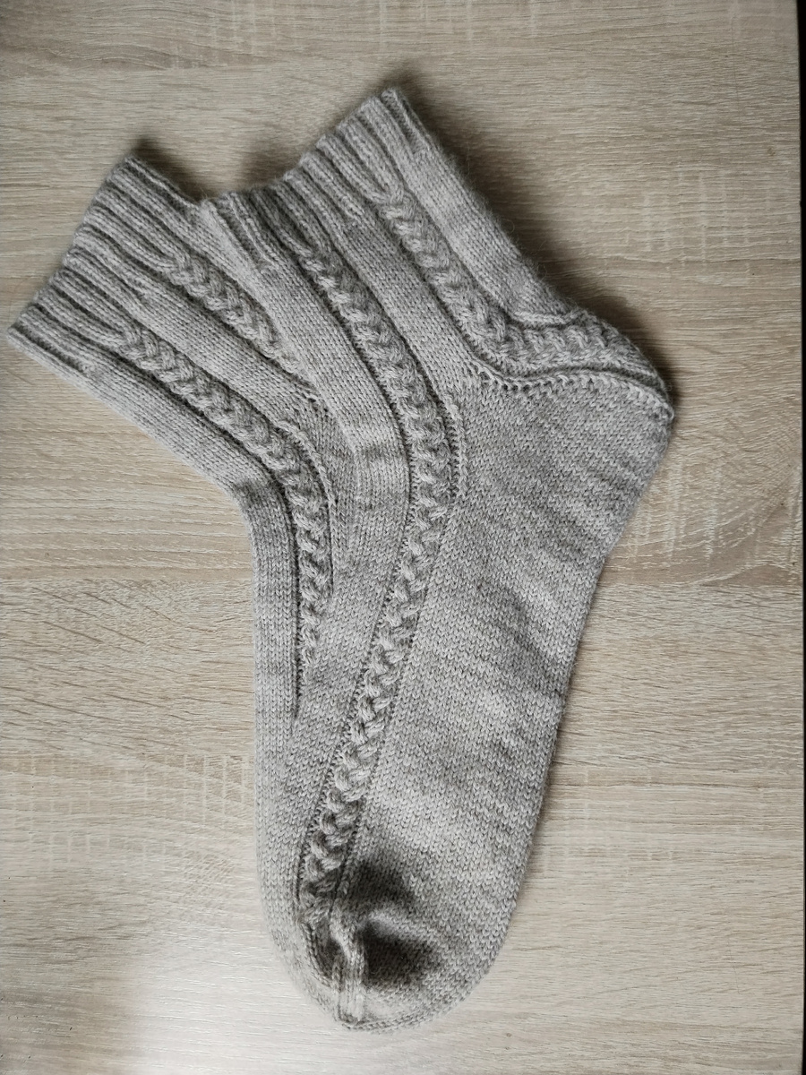 Закончила я тут одну пару носков со «странной» пяткой. Да-да, именно странной — не потому, что я ошиблась, а потому что она выбивается из привычных схем. Вязала я эти носки из Alize Superwash, и, знаете, получилось весьма достойно. Но как только я закрыла мысок, меня осенило: «А почему бы не связать ещё одну пару — чтобы уж точно понять, как работает эта чудо-пятка?» Ну и понеслось. Вторая пара получается женская, поменьше, из другой пряжи — Astra Socks, которую я отрыла в своих хомячьих запасах. Вот уж правда: полезла в ящик «на всякий случай» — а там целое богатство! То, что я собиралась просто протестировать мастер-класс, в итоге превратилось в полноценный эксперимент по всем правилам вязальной науки. Пятка: странная, но гениальная Если в первой паре у меня была классика — обычные кромочные петли по задней стенке пятки, — то во второй я решила пойти другим путём. Сделала кромку с узелками (или, как я называю, «жемчужную»). Такая кромка не просто выглядит красиво — она ещё и удобнее