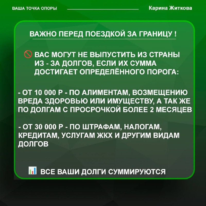 ⭐️Вы мечтаете отправиться за границу? Проверьте свой долг! Многие не знают, что наличие определенной суммы задолженности может стать преградой для выезда за границу. Актуальная информация поможет избежать неожиданных проблем на границах.