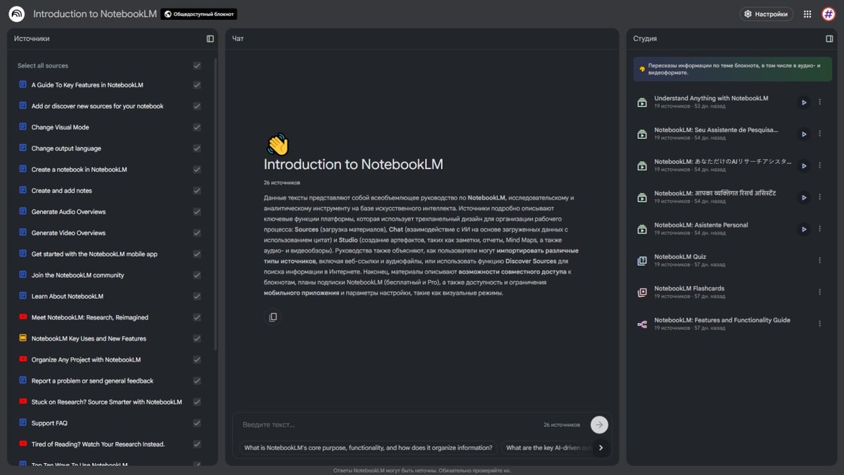 Любой специалист в области OSINT знает, что самая трудоемкая часть работы — это не сбор данных, а их анализ. Горы PDF-отчетов, расшифровки интервью, документы на разных языках — все это нужно прочитать, структурировать и выделить ключевые идеи. Традиционные методы ведения заметок часто не справляются с таким объемом информации, что приводит к потере времени и потенциально важных инсайтов. К счастью, на помощь приходят инструменты на базе искусственного интеллекта. Сегодня мы рассмотрим NotebookLM от Google — приложение, которое может кардинально изменить ваш подход к анализу данных. 📞 https://notebooklm.google/ NotebookLM — это ваш личный AI-исследователь, который работает с вашими же документами. Сервис может генерировать так называемые «документальные копии» на 50 языках. Используйте инструмент для предварительного анализа "стопок" документов, которые интересно, но не обязательно читать от корки до корки. Это поможет быстро отсеять неподходящие материалы и сфокусироваться на самы