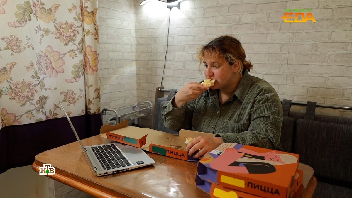 Сколько калорий это добавляет к ее рациону? В первый день эксперимента девушку попросили выбрать три любых пиццы, а также газировку и съесть сколько захочется, как обычно включив любимую серию. Когда спустя 40 минут Настя сказала, что наелась, на столе оставалась всего одна пицца из трех — то есть она съела 12 кусков. И выпила полтора литра колы.