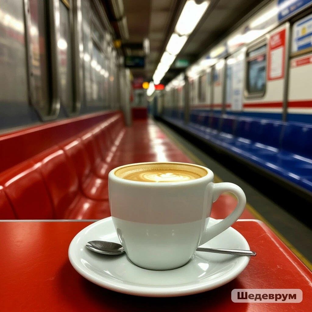 #кофе в метро Недавно появился новый ритуал, я пью кофе в метро. Вынужденно появился, с утра не хватает времени, и сваренный кофе беру с собой, с конфетой очень прикольно. Реже покупаю в автомате. Мой-то вкуснее. Сначала было странно. Кофе хочется, но вокруг люди, и нет того интимного роскошного момента, как кофе, выпитый дома или на берегу моря... Но это жизнь. В метро я провожу 2 часа в день. Такие дела. ☕А вот вы пьете кофе на ходу, в транспорте, бывает? Картинка от Шедеврума. #метро