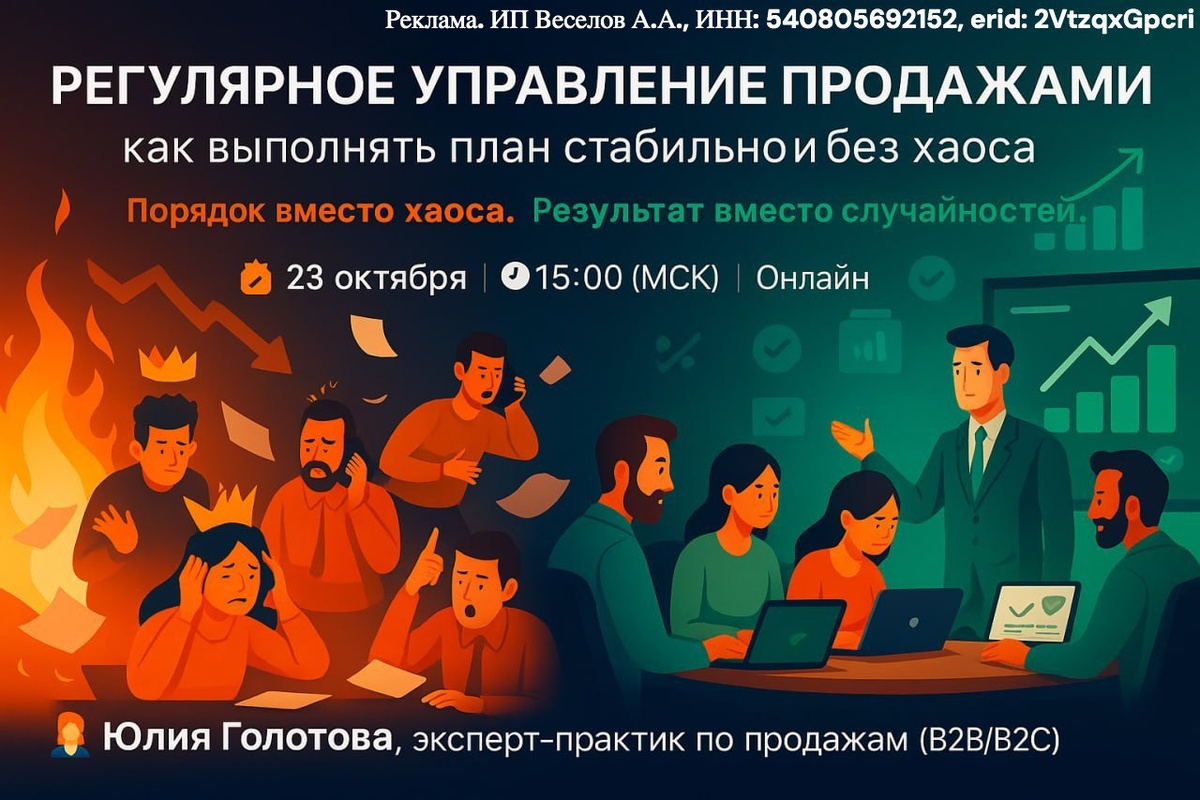 📅 23 октября (ср) в 15:00 (МСК) 🎯 Регулярное управление отделом продаж: как выполнять план стабильно и без хаоса Планёрки идут, отчёты собираются — а продажи всё равно буксуют? Кажется, всё под контролем, но цифры снова скачут, сделки зависают, и отдел живёт в режиме «пожаров»? На встрече разберём, как выстроить регулярное эффективное управление отделом продаж, чтобы команда работала предсказуемо, а результат был системным: 🔹 какие форматы встреч нужны РОПу каждую неделю, 🔹 что смотреть в CRM и звонках, 🔹 как проводить 1:1 и разборы сделок, чтобы реально двигались конверсии и закрытия. 🎤 Юлия Голотова, эксперт-практик по продажам (B2B/B2C) 🎁 В конце встречи — ценный подарок для внедрения системы уже на следующей неделе. ⚡️ Участие бесплатное, предварительная регистрация не требуется. 👉 Подключайтесь по ссылке: https://pruffme.com/landing/u705497/regulyarnyimenedjment231025 #вебинарB2B #ростпродаж #управлениеотделомпродаж #системапродаж