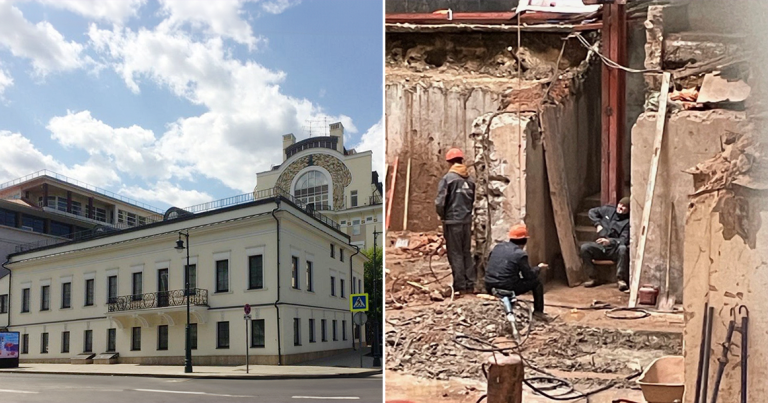 С этим домом на Остоженке, 26/1, получилась странная история: в июле он перешел из списка выявленных памятников в реестр региональных, что должно было бы поставить его под защиту. Но, как оказалось, подвох был в формулировках. О сносе сообщает «Архнадзор». «Внутренние стены выломаны до пола первого этажа, задней стены нет, фасадная стена по Остоженке разрушена наполовину», — пишут активисты. Ампирный дом Лавровых — объект Красной, а теперь и Черной книги «Архнадзора». Градозащитники, которые ведут учет сносимых памятников, вносят в первую книгу те дома, которые под угрозой, а во вторую — которые фактически снесены. Правообладателем памятника является ООО «Бизнес-центр “Остоженка”». «Подвох заключен в новой формулировке предмета охраны, приложенной к приказу. Сравнив ее со старой формулировкой, содержащейся в акте историко-культурной экспертизы проекта реставрации 2023 года (стр. 11−12), обнаруживаем исчезновение ключевой позиции: “Капитальные стены первой трети XIX — начала XX века, их