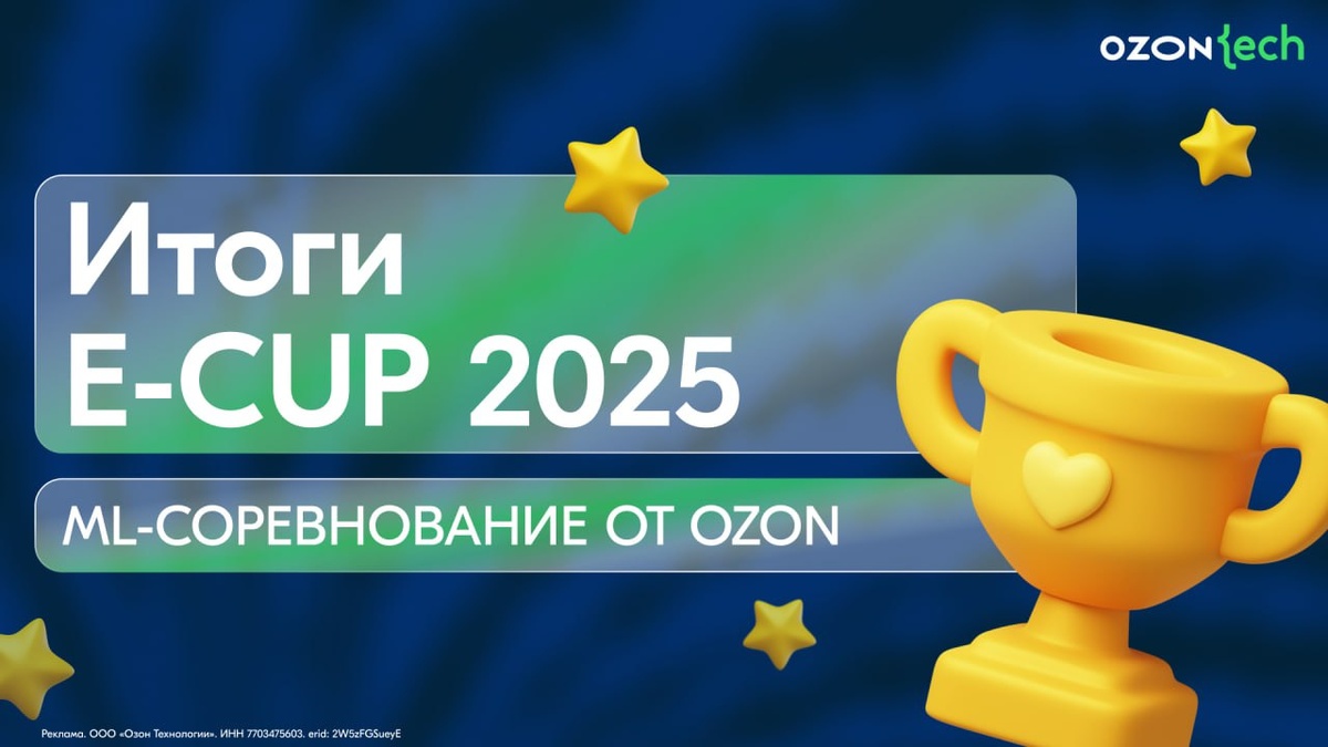 E-CUP 2025: подводим итоги На ML-соревновании от Ozon участники продемонстрировали глубокую проработку проектов, смелые гипотезы и сильные решения. Главные цифры: 🔸 2981 зарегистрированный участник 🔸 1221 команда 🔸 449 присланных решений 🔸 15 команд финалистов 🔸 Призовой фонд — 7 200 000 рублей Финал E-CUP 2025 прошёл на конференции E-CODE в Москве. Команды представили решения экспертам, поучаствовали в насыщенной программе с 50+ докладами, карьерными консультациями и стали частью комьюнити, где everything as code. Поздравляем победителей и благодарим каждого участника — вы сделали этот сезон по-настоящему масштабным и интересным. Благодарим каждую команду — вы сделали этот сезон по-настоящему грандиозным.