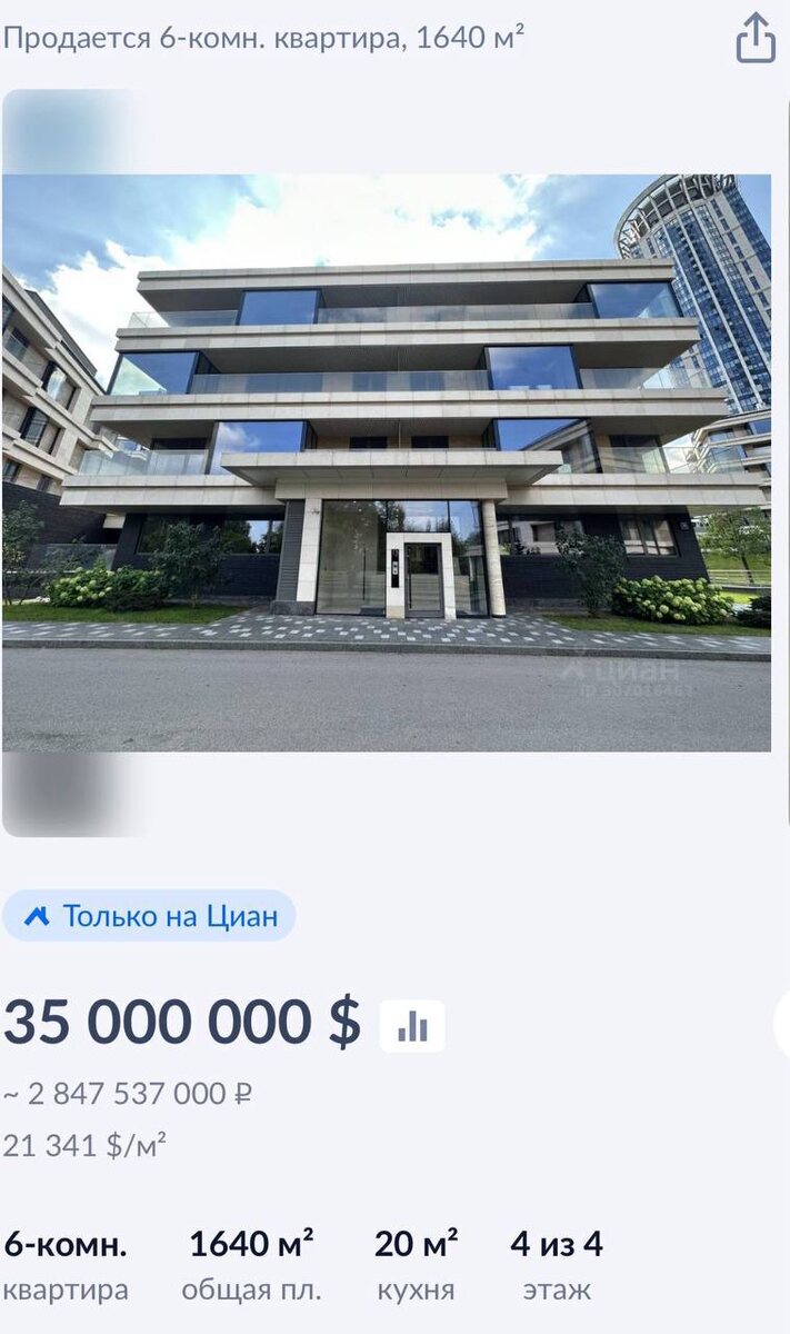 🏢В Москве на продажу выставили самую большая квартиру в России — её площадь превышает 1,6 тыс