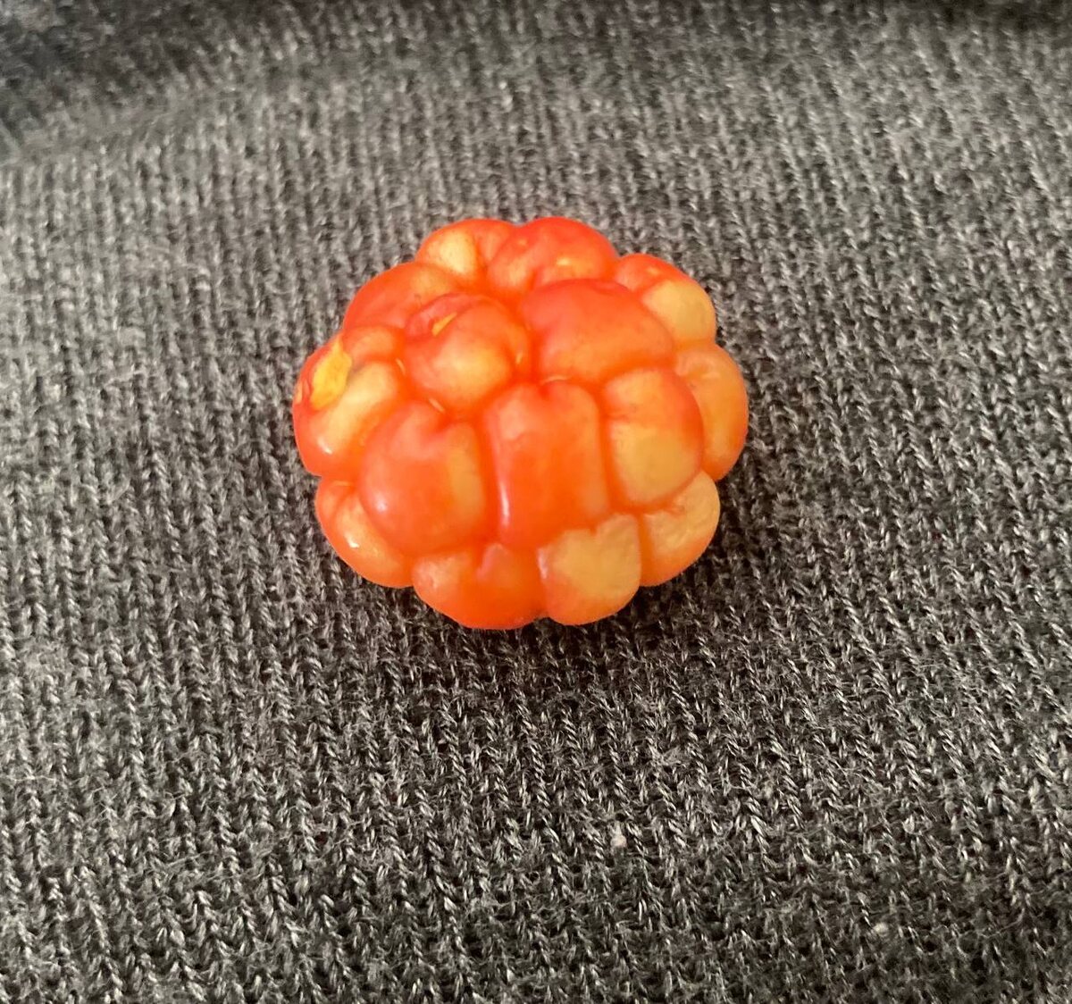 это северная ягода, растущая на торфяных болотах, в лесотундре и тундре. Созревает в июле в Карелии, в августе в Сибири и на Дальнем Востоке. Содержит: витамины С, А, В, РР, Е минеральные вещества: К, Мg, Fe, P Из морошки готовят джемы, соусы для мяса. Красные ягоды - неспелые, желтые - спелые. В этом году мы с семьей видели только цветущую морошку и только на одном острове при выходе в Энгозеро. Когда проезжали на поезде Беломорск (к сожалению, из поезда Белого моря не было видно), увидели, как мужчина продавал морошку, муж купил ее, так мы впервые попробовали, морошка очень похожа на малину, но это травянистое растение, а не кустарник, и по вкусу более нежная и менее кислая. Если поедете на север, обязательно попробуйте!!!