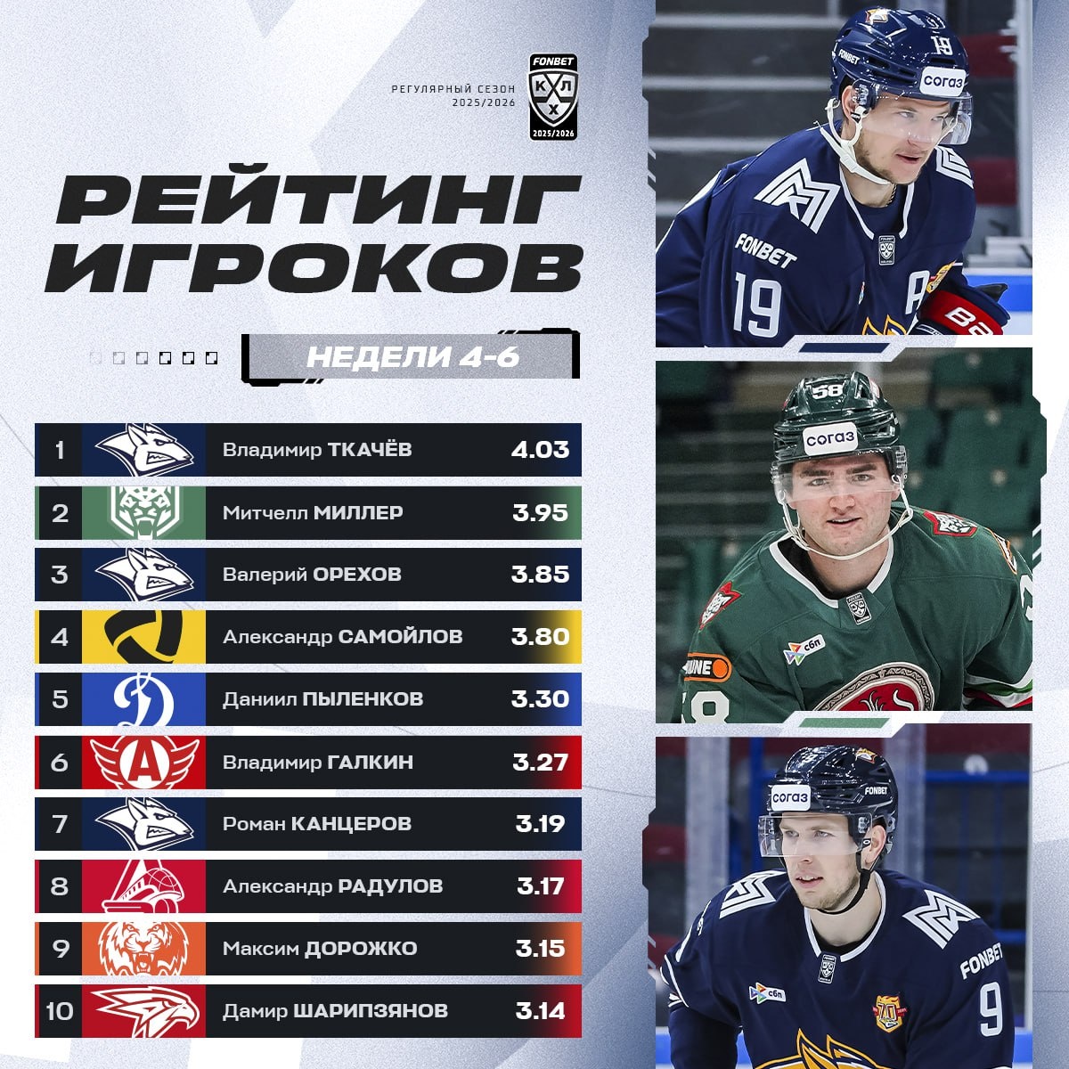 Хоккеисты из восьми команд вошли в Топ-10 нового Рейтинга игроков!