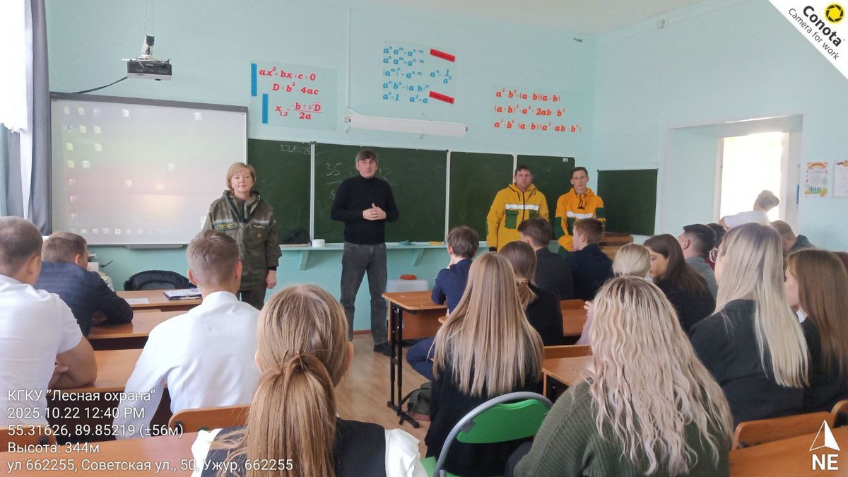 Сотрудники Лесной охраны и Ужурского лесопожарного центра показали старшеклассникам видео о своих профессиях. Алексей Никончук из Сибирского государственного университета науки и технологий имени академика Решетнёва рассказал будущим студентам, как подготовиться к поступлению, какие знания подтянуть и какие курсы можно пройти в университете. Ребята с интересом слушали гостей и задавали интересующие их вопросы.