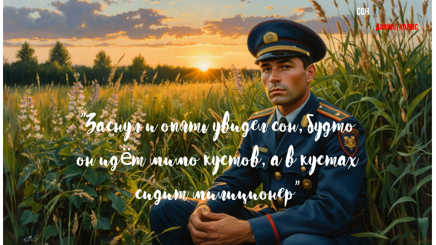 Этот короткий, казалось бы, простенький рассказ - настоящее погружение в абсурдную реальность, где все кажется ироничным, а в то же время глубоко тревожным. Вся его структура построена на повторе и одержимом движении героя - Калугина - через нескончаемые циклы снов и пробуждений, что делает произведение необычайно эмоциональным и насыщенным смыслом. Весь текст словно питается одним главным мотивом - бесконечного повторения, словно в нем заложена идея о том, что жизнь и сны тесно переплетены, и граница между ними исчезает: «Калугин заснул и увидел сон, будто он сидит в кустах, а мимо кустов проходит милиционер.» - эти строки могут стать метафорой для нашей жизни, наполненной похожими ситуациями, когда мы повторяем одни и те же мысли, мечты или страхи, не находя выхода. Герой постоянно возвращается к одному и тому же образу, словно он застрял в порочной цепочке сновидений - «Калугин проснулся, почесал рот и опять заснул» - и каждая новая попытка избавиться от этого повторяющегося состоян