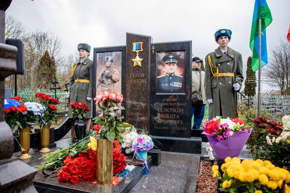 В минувший вторник, 21 октября, в Ельце Липецкой области открыли памятник Герою Российской Федерации Никите Сёмочкину. Ельчанин погиб при исполнении своего воинского долга в ходе специальной военной операции и награжден высшим званием за геройский подвиг посмертно. Мемориал установили на месте захоронения Героя Российской Федерации, гвардии старшего лейтенанта Никиты Сёмочкина. Об этом рассказал мэр Ельца Вячеслав Жабин. — Низкий поклон родителям Никиты — Игорю Петровичу и Елене Николаевне Сёмочкиным. Слов утешения не подобрать. Огромная благодарность за то, что продолжаете помогать фронту, этого бы очень хотел Никита, так как всегда переживал за своих боевых товарищей, — прокомментировал градоначальник. Памятник установили на средства семьи погибшего воина. Также свой вклад внес близкий друг Никиты — спикер облсовета Владимир Сериков. — Никита — это наш Герой, наш современник. Он доказал, что та самая правда — «Русские своих не бросают» — жива в нашем поколении. Ценой собственной жизн
