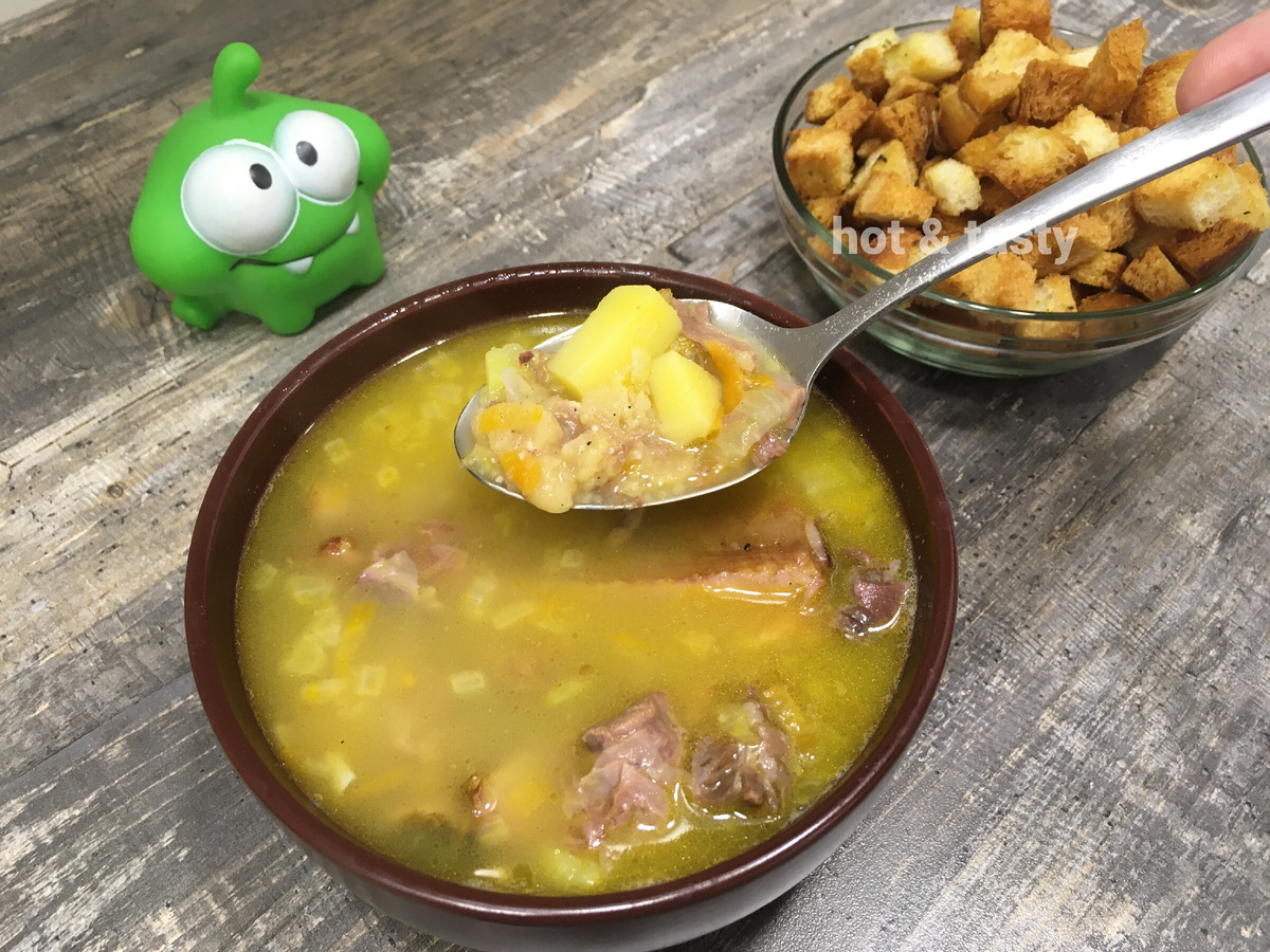 Мясо буквально тает во рту, горох превращается в мягкий крем, а копчёности придают ту самую "мужскую" нотку.