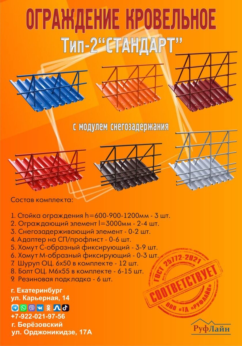 Кровельные ограждения: безопасность вашего дома с компанией РУФЛАЙН. Кровля — это не только защита от дождя и снега, но и место повышенной опасности. Именно поэтому так важно задуматься о безопасности при эксплуатации крыши. Сегодня мы поговорим о том, почему установка кровельного ограждения необходима каждому дому и как компания «РУФЛАЙН» поможет Вам обеспечить безопасность Вашей семьи и имущества. Почему кровельное ограждение необходимо? Безопасность: Ограждения кровли предотвращают падение людей или предметов с высоты во время уборки снега, ремонта кровли или просто осмотра состояния крыши. Ответственность перед законом: В некоторых регионах наличие ограждений обязательно по строительным нормам и правилам (СНиП). Долговечность конструкции: Правильно установленное ограждение с модулем снегозадержания снижает риск повреждения элементов кровли и водосточной системы. Эстетика: Современные решения позволяют установить красивое и безопасное ограждение без ущерба внешнему виду здания.