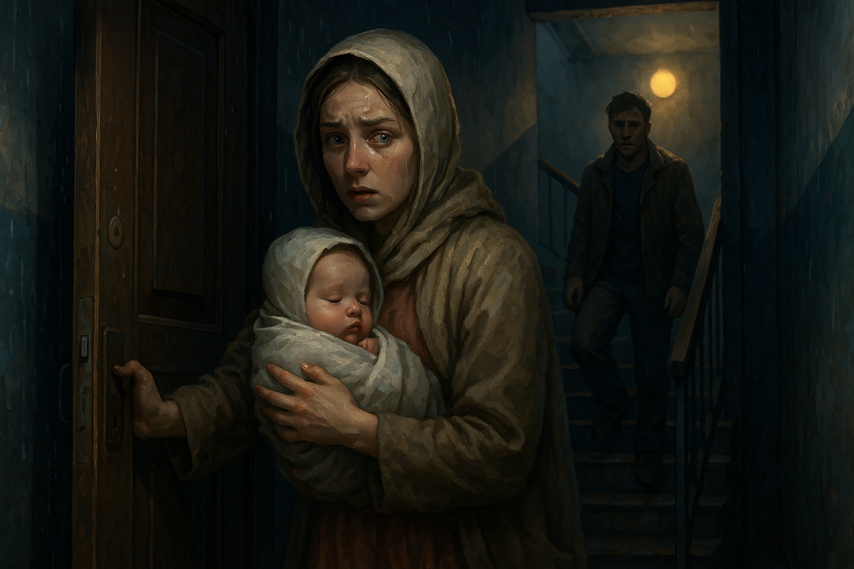 Она подцепила ногтем кнопку домофона, набрала старый код. Не сработало. Постучала — глупо, но привычка. Дверь открылась — кто-то выходил. Тёплый свет ударил в глаза. Илья стоял в проёме, на плече полотенце, на шее следы пара — от ванны. Он в первую секунду не узнал её: мокрая шапка, чужая куртка, ребёнок.