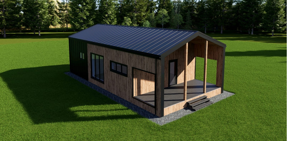 На каменистом грунте Летом этого года мы рассказывали, как возвели свайный фундамент под баню для спа-комплекса «Банникум». Спустя два месяца мы получили от «Банникума» еще один заказ — теперь на два фундамента под бани в муниципальном округе Истра Московской области. В этой статье раскроем, как будут выглядеть готовые постройки, какие сваи и обвязку применили для фундамента, как проходили работы. Обе бани, для которых предстояло возвести фундамент — это каркасные одноэтажные строения в стиле барнхаус. В наружной отделке будут использовано натуральное дерево, кровля фальцевая, в цвете графит. Первая постройка имеет прямоугольную форму, размеры пятна застройки — около 14 × 7 м. У одного их фасадов расположена крытая терраса. Для нее использовали 40 свай диаметром 108 мм. Участок имеет небольшой уклон, поэтому сваи использовали разной длины: 30 свай длиной 5 м и 10 — длиной 5,5 м. Для обвязки, чтобы соединить сваи в единую конструкцию фундамента, применили металлический швеллер 16П. Втор